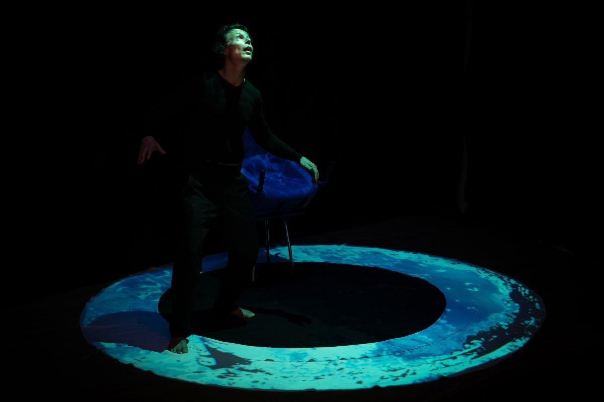 Una messa in scena immersiva fatta di suoni e immagini ci porta nel cuore di un incontro inaspettato: quello di una persona con la propria coscienza, che gli si presenta