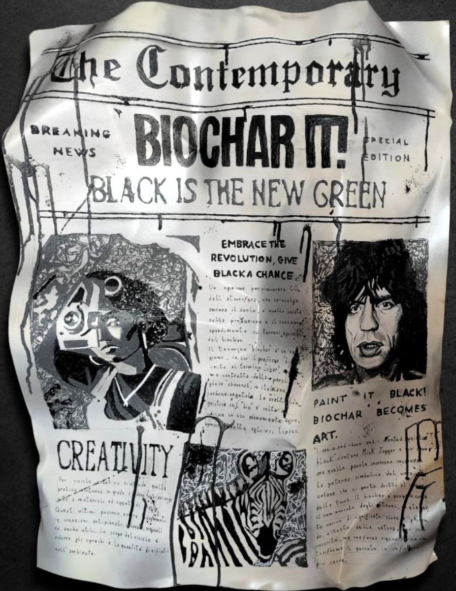 Al centro del progetto, l’Arte che incontra il Biochar: quest’ultimo altro non è che carbone vegetale ottenuto da riscaldamento ad alte temperature di scarti, biomasse perlopiù certificate,