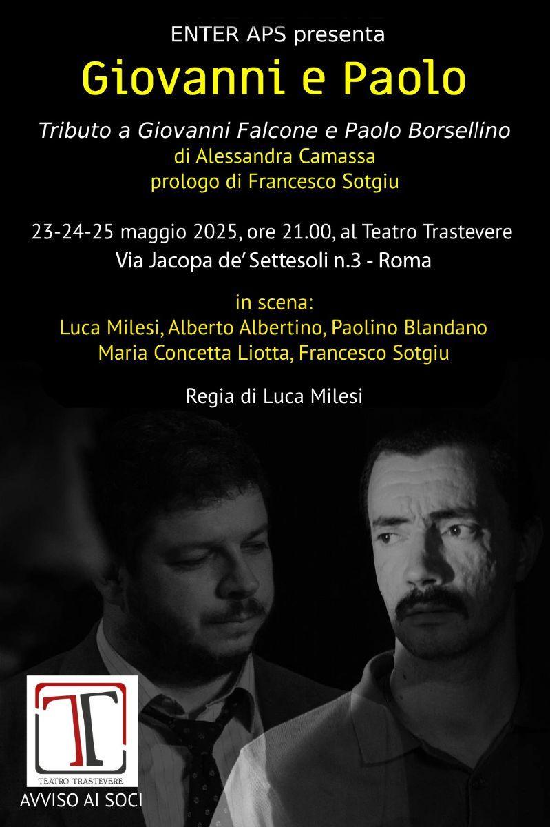 La Compagnia ENTER porta in scena per il dodicesimo anno lo spettacolo dedicato ai due magistrati siciliani rimasti uccisi insieme ai loro agenti di scorta nelle Stragi del 1992.