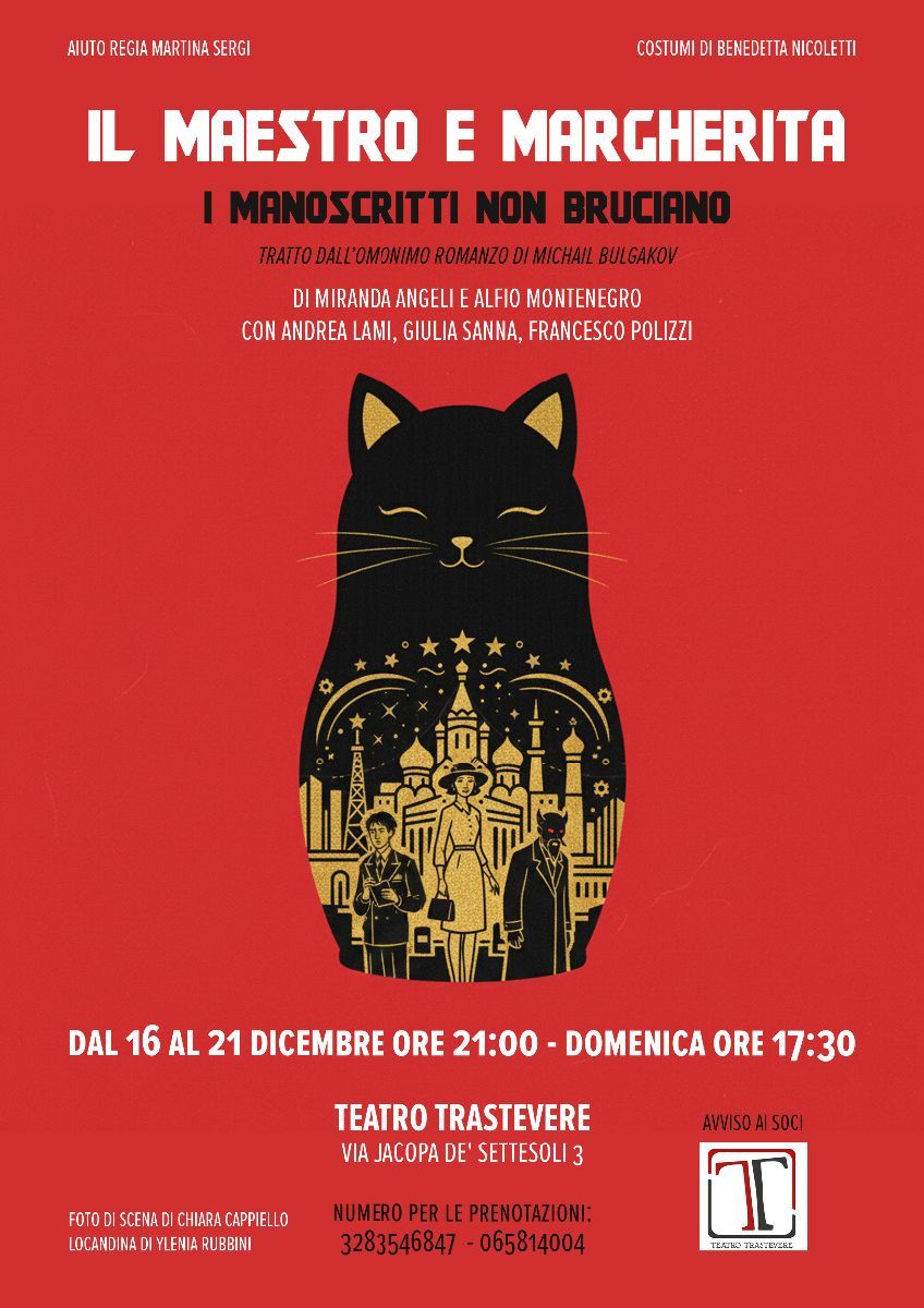 Non è difficile immaginare come lo stesso Bulgakov si immedesimasse in parte nell’irriverente Woland, ma soprattutto nel tormentato Maestro. Nello spettacolo, così, il lavoro di Bulgakov sul manoscritto negli ultimi mesi della sua vita si intreccia e confonde con la storia del manoscritto stesso, dando vita a un racconto su più piani, a matrioska, con lo spostamento dinamico e continuo tra la realtà cupa di Bulgakov alla sua psichedelica immaginazione.