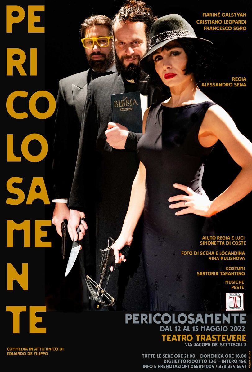 PERICOLOSAMENTE è la storia di Michele che rientrato dall’America cerca una stanza in affitto nella Napoli alla quale egli fa ritorno dopo 15 anni. Accolto l’invito nel visitare una stanza presso la casa di Arturo, suo vecchio amico, Michele viene accolto da Dorotea, moglie di Arturo, in attesa che suo marito rientri in casa. Sotto gli occhi di Michele, fra moglie e marito accadrà l’impensabile, soprattutto quando Dorotea si mostrerà recalcitrante di fronte alle richieste di suo marito, tali da indurlo a compiere un’azione disarmante e al contempo divertente per riportare la pace in famiglia. Cit.
