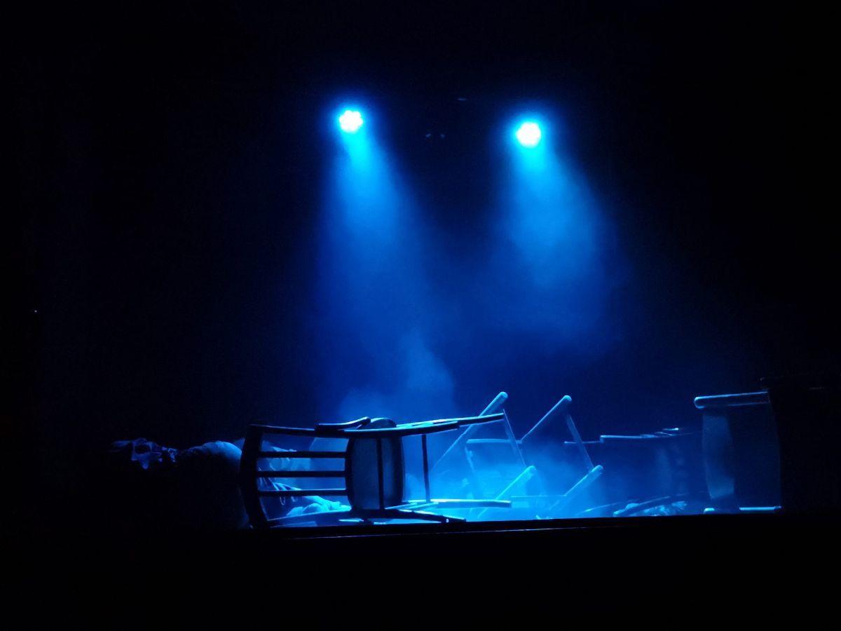 In scena solo quattro sedie che si trasformano sotto le mani dei personaggi in differenti scenari.