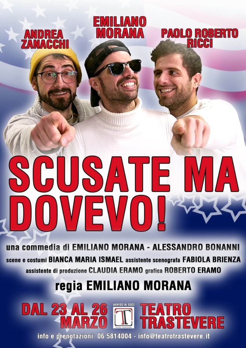 Sì... Perché il problema agli occhi non è il vero motivo per cui Mattia, a sua insaputa, è stato trascinato a New York... Cosa nasconde Tommaso Scartocci? Il Dottor Lorusso come prenderà la verità dei fatti? Lo scopriremo a teatro nella commedia brillante “Scusate... ma dovevo!”, scritta da Emiliano Morana ed Alessandro Bonanni per la regia di Emiliano Morana.